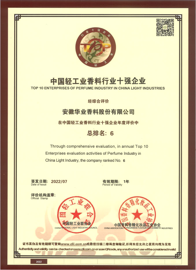 中國輕工業(yè)香料行業(yè)十強企業(yè)-第六名