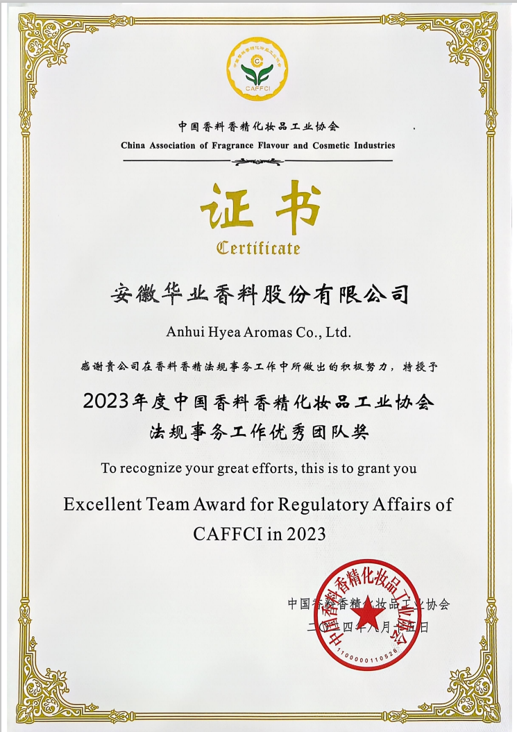 2023年度中國香料香精化妝品工業(yè)協(xié)會法規(guī)事務(wù)工作優(yōu)秀團隊獎