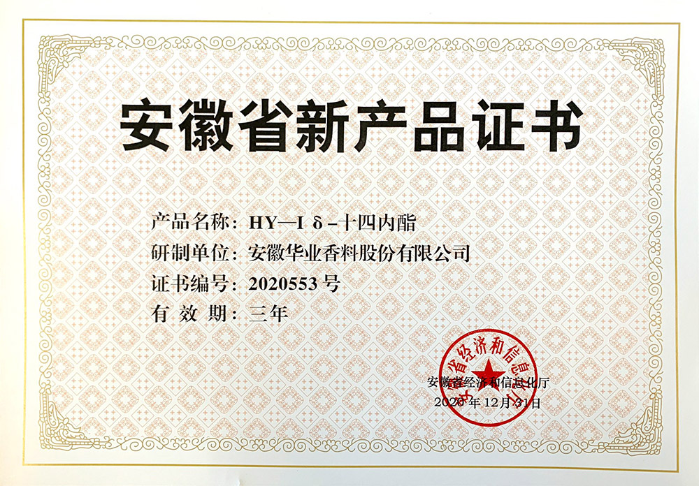 安徽省新產(chǎn)品證書-HY-I δ-十四內(nèi)脂