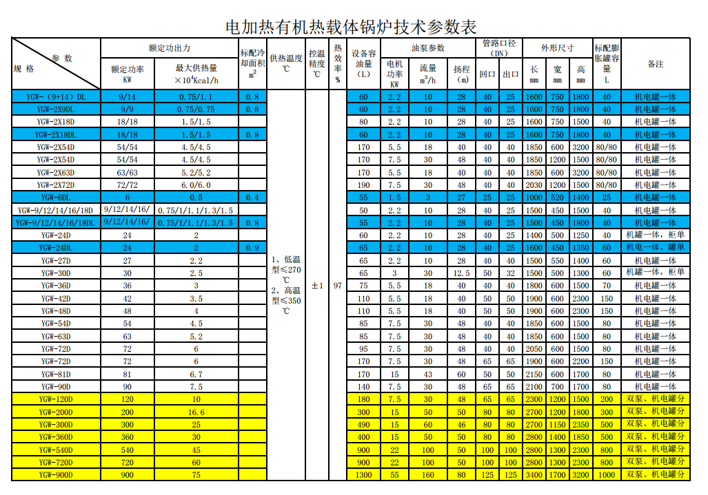 YGW系列--電加熱有機熱載體鍋爐技術(shù)參數(shù)表