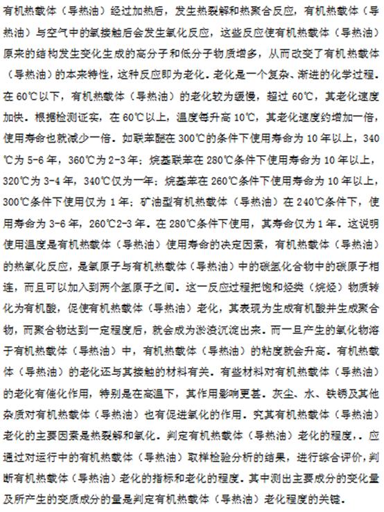 1、系統(tǒng)注油時,有機熱載體為低溫狀態(tài),不存在老化情況;